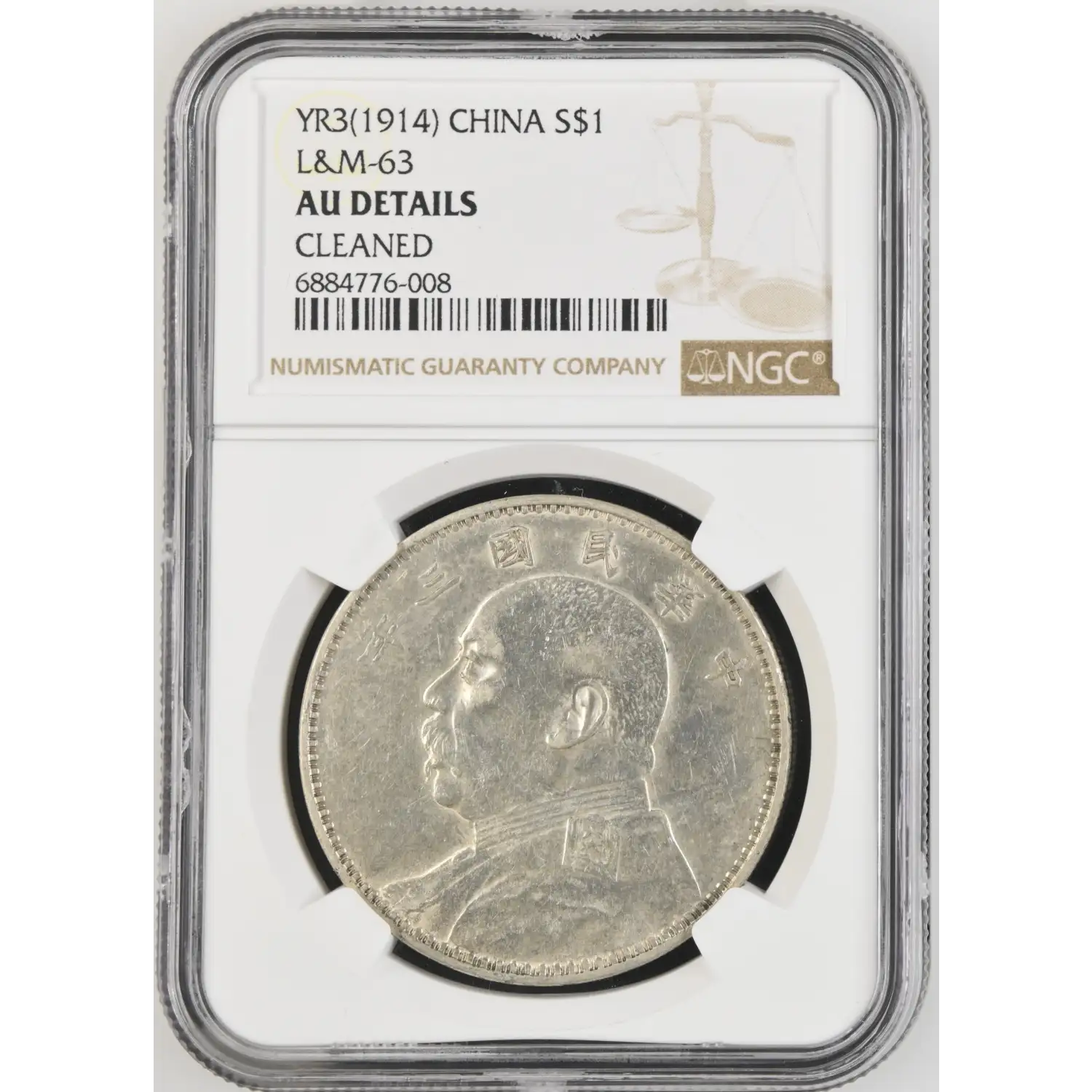 1914 CHINA Silver DOLLAR NGC AU Details YR3(1914) L&M-63
