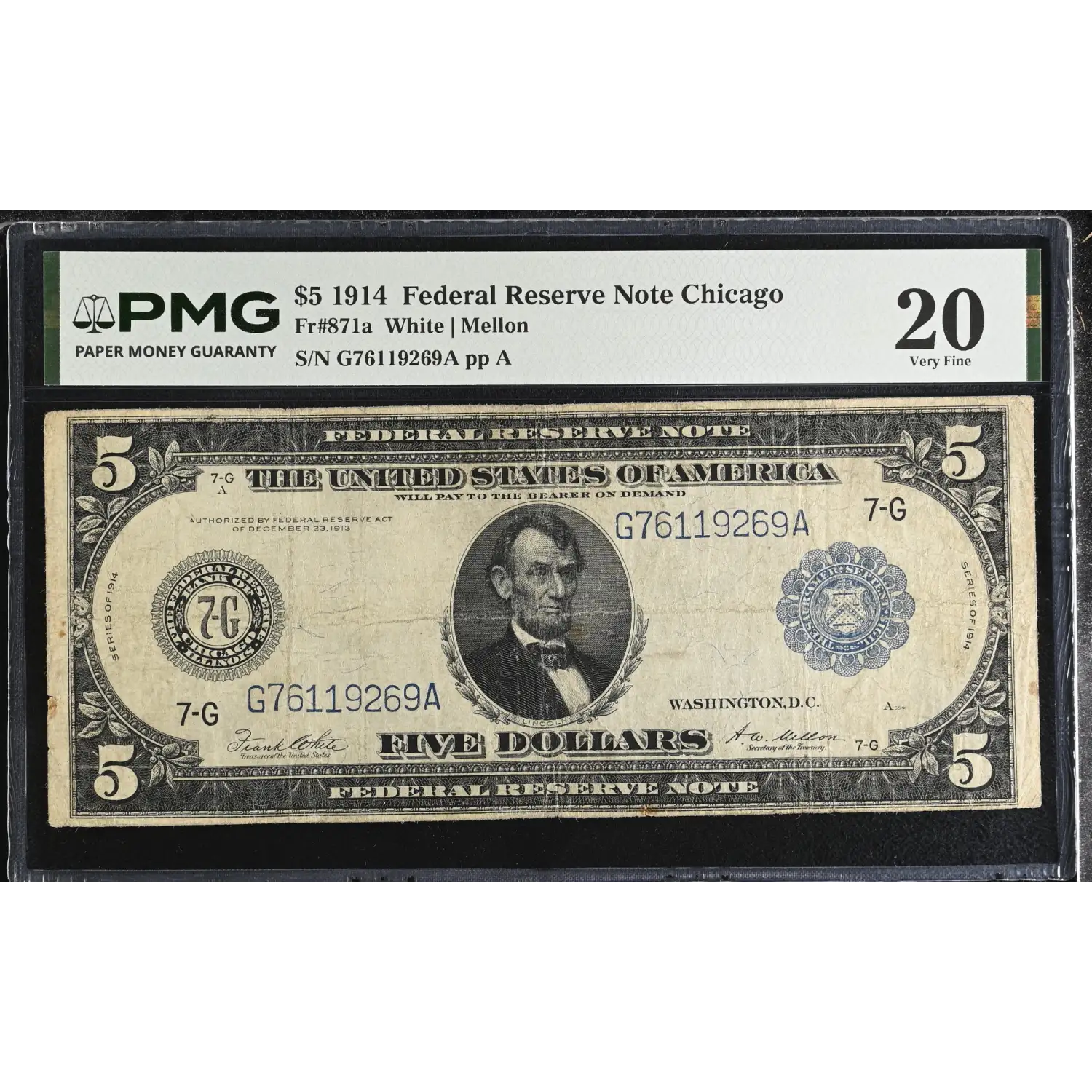$5 1914 Blue Seal Federal Reserve Notes 871A