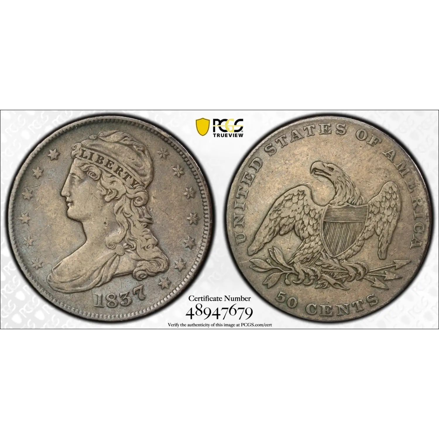 1837 Capped Bust Half Dollars, Reeded Edge PCGS VF-20